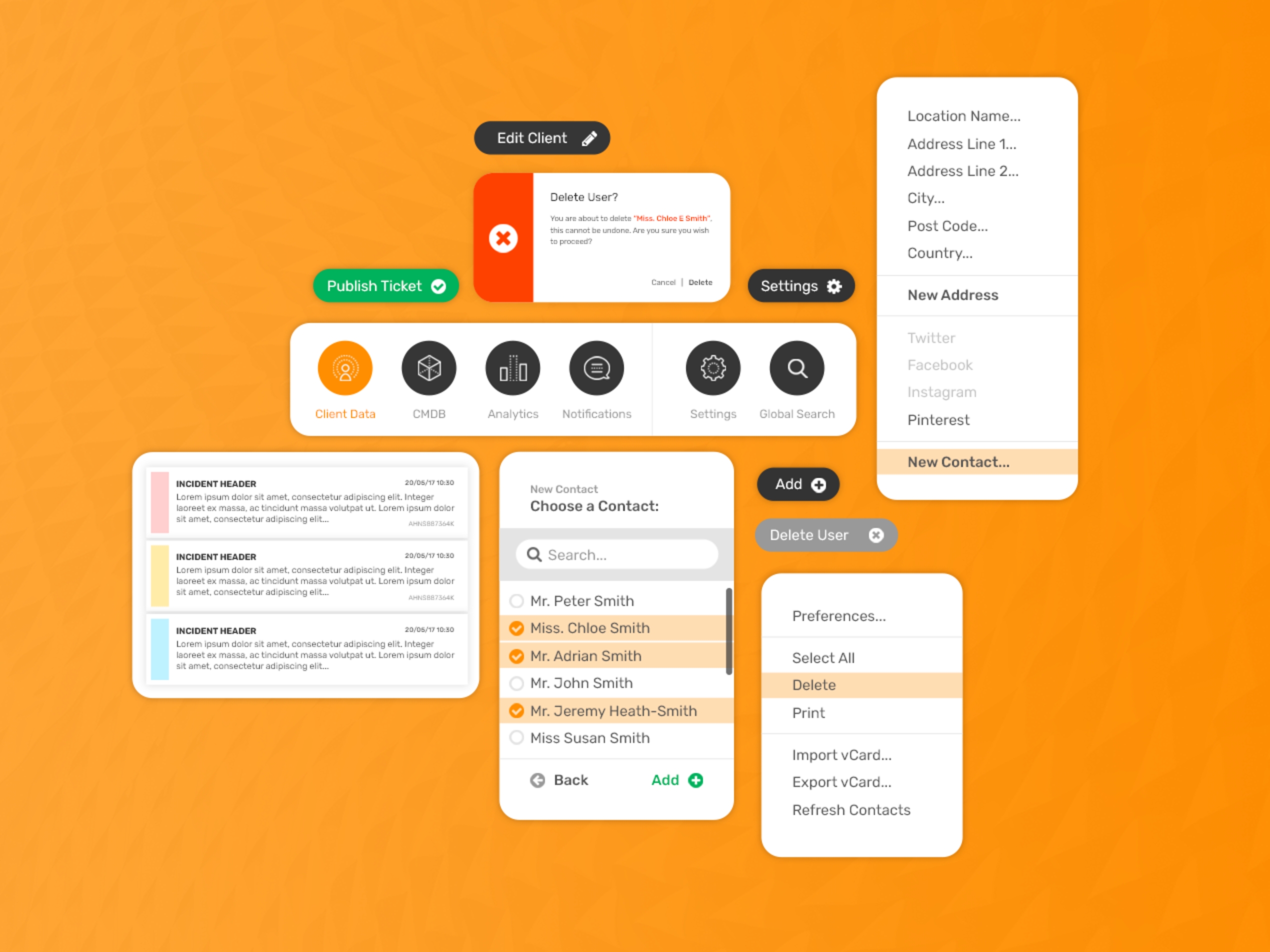 The interface keeps information density high while staying scannable. Orange accents guide users through workflows, while a restrained palette keeps the focus where it belongs - on the content.